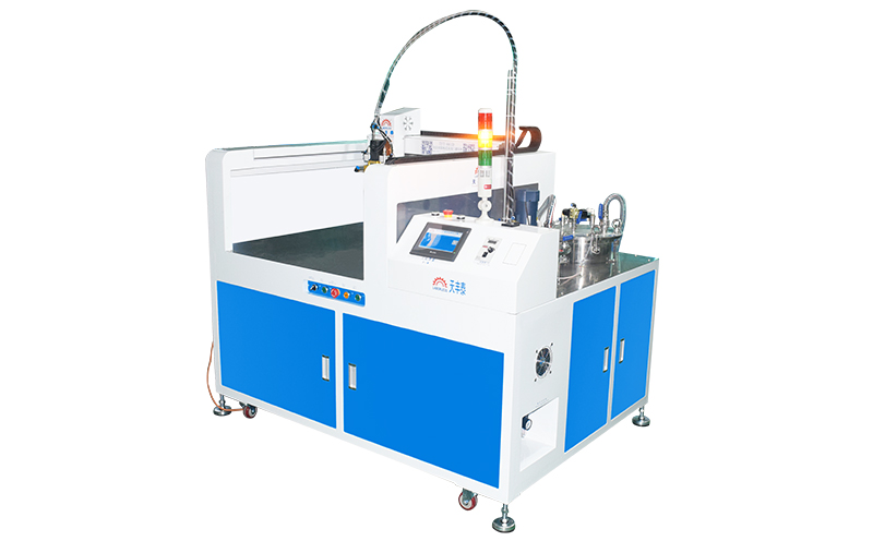 3、涂膠部分易于操作。您只需要將AB膠倒入相應(yīng)的料桶中,然后在PLC觸摸屏中設(shè)置膠填充程序即可。按下一個(gè)按鈕即可啟動,機(jī)器可以自動填充膠水。機(jī)器自動按照產(chǎn)品填充量分配,有效節(jié)省膠水;